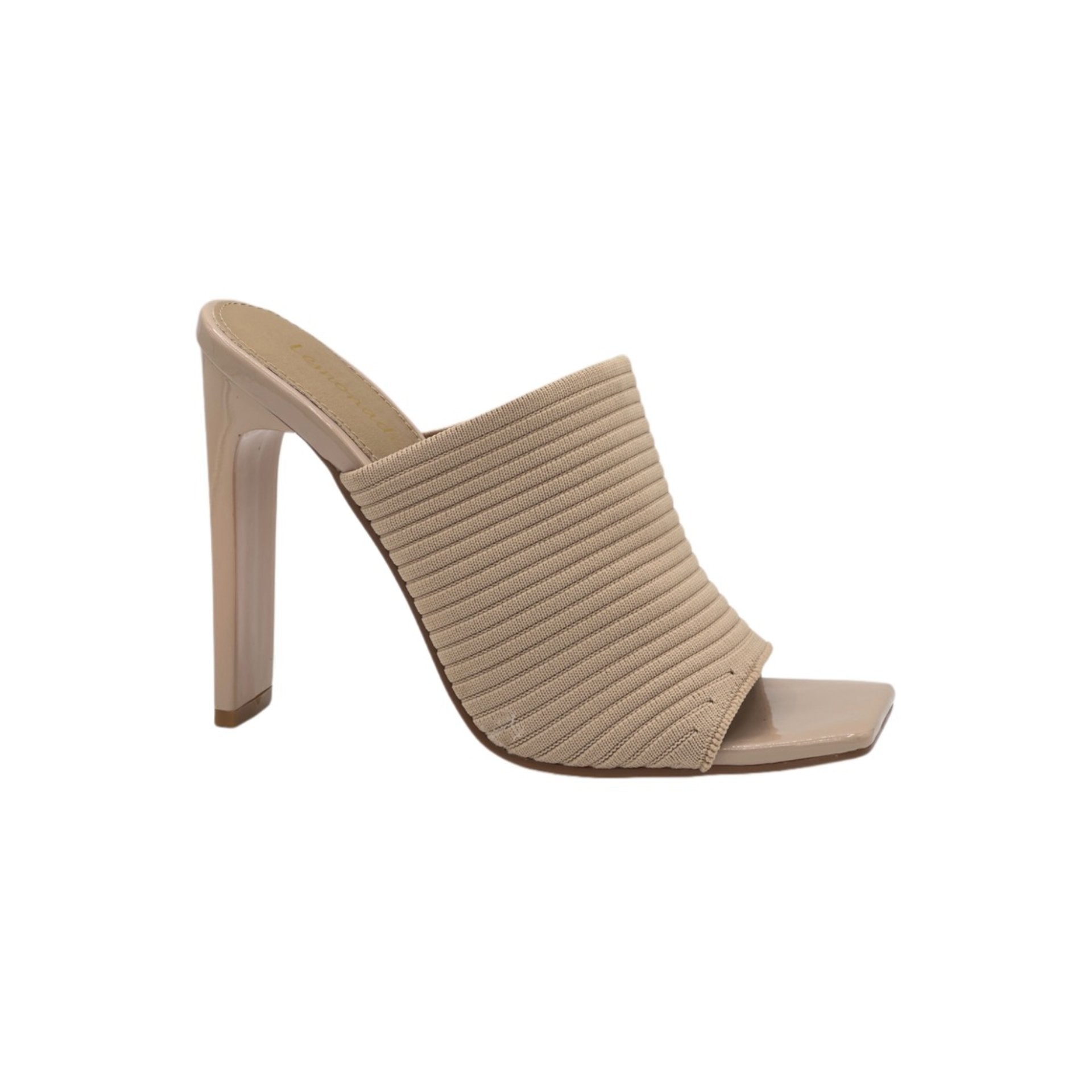 Get into these super chic, ribbed mules-- With a square, thin patent leather block heel and square toe.