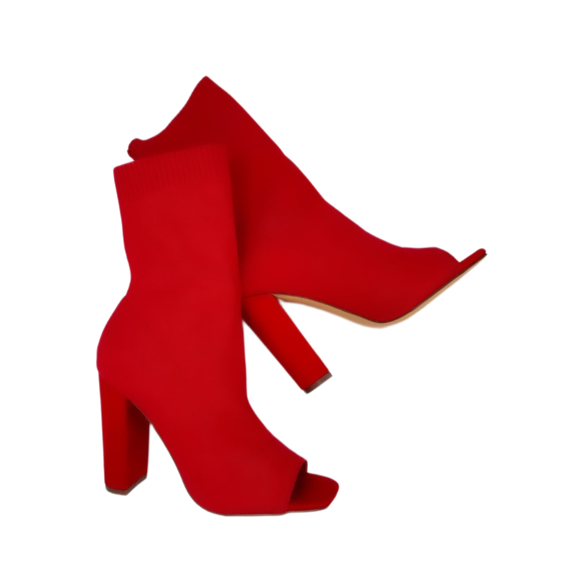 You're going to a holiday party and you're not wearing THESE? Nothing says party like a red peep toe pull-on chunky heel ankle bootie!